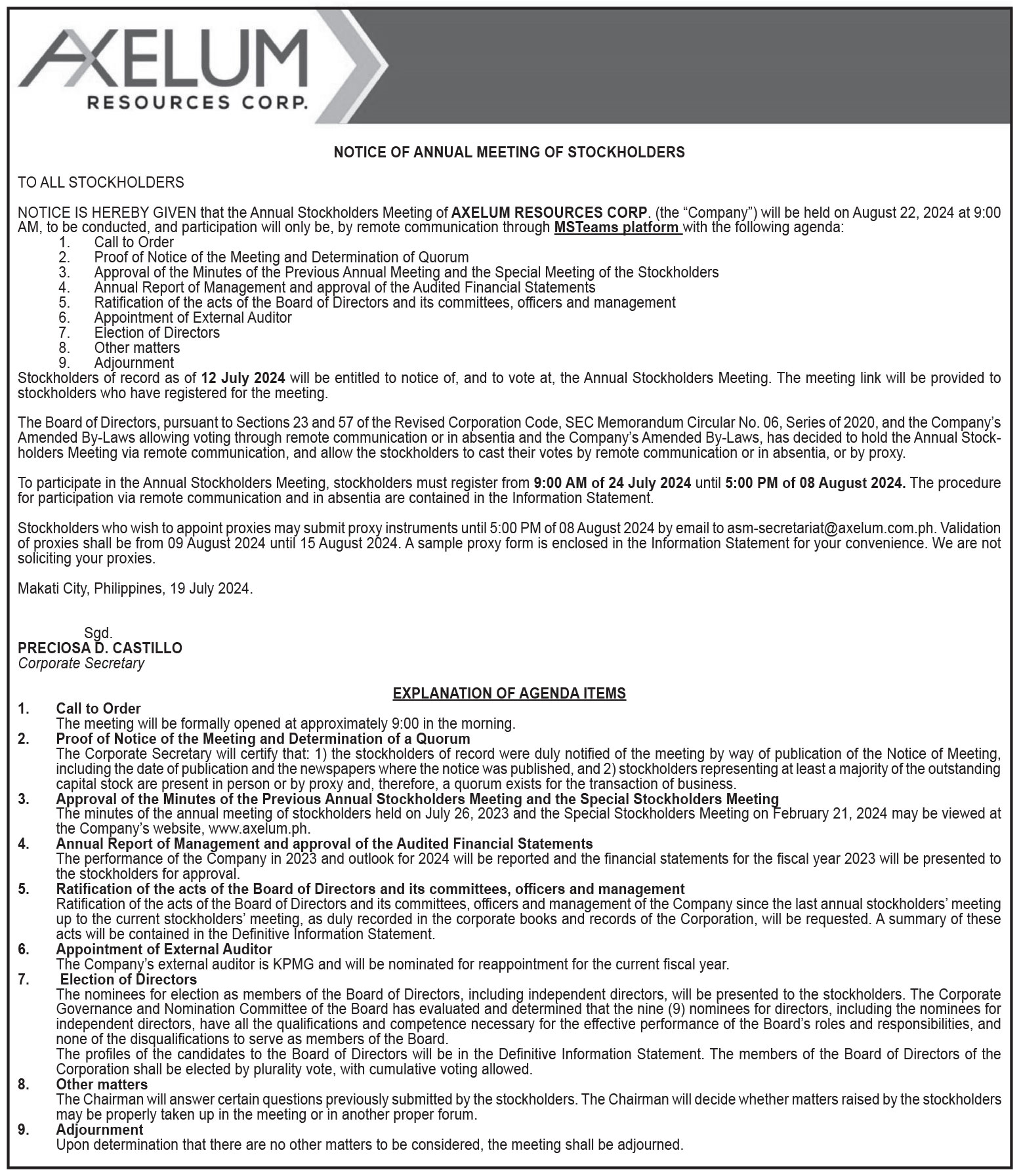 FacebookInstagramTwitterYoutube Wednesday, October 22, 2025 SEARCH Subscribe Home Business Business News World Business Corporate News Market Makers Marketing Board Shipping & Transportation News National News International News Sports Baseball Basketball Billiard Boxing Football Golf Olympics Other Sports Sea Games Tennis Volleyball Lifestyle Arts Columns Fashion Food Health Home Living Entertainment Columns Movies Music/Concert/Shows Spotlight TV/Streaming Opinion Column of the day Editorial Cartoon Editorial Opinion of the day Weekly Features Banking & Finance Torque & Power Alternative Fuel/Electric Vehicles Commercial Vehicles Luxury Cars Motorcycles Test Drives Infotech & Electronics Appliances/Electronics Constructioneering Cybersecurity/Privacy e-Commerce e-Sports/Gaming Fintech/Crypto Gadgets Imaging Printed Circuit Science and Technology Socmed Tech Industry Tech This Week Tech People Property Travel & Tourism Special Features Anniversary Issues 42nd Anniversary Section C Section D Section E Section F Section G Section H 41st Anniversary Supplement 40th Anniversary Report 39th Anniversary Report 38th Anniversary Report Supplements Branded Content Notices Uncategorized NOTICE OF ANNUAL MEETING OF STOCKHOLDERS: Axelum Resources Corp. By ___ July 24, 2024 8:06 AM Updated: July 24, 2025 4:07 PM Share FacebookTwitterPinterestWhatsApp Asia Event Group Inc. launches Aftermarket Expo Asia 2025: A premier platform for innovation and growth in the automotive sector October 2, 2025 Fight vs. illegal gambling gets boost with ₱50M PAGCOR grant to NBI October 2, 2025 NUSTAR Online joins as major sponsor of RED Charity Gala 2025, championing fashion, philanthropy, and Filipino ingenuity October 2, 2025 Nestlé Wellness Campus promotes the importance of nutritious breakfast and healthy habits during Better Breakfast Month October 2, 2025 PlayTime CARES: Strengthening communities and supporting Government for nation-building October 2, 2025 Share FacebookTwitterPinterestWhatsApp Previous articleFROM A BUG CALLED C-00000291*.SYS: Windows broken into due to a CrowdStrike errorNext articleConverge launches Internet Scholarship Program for under-resourced students - Advertisement - - Advertisement - E-Paper More Stories NUSTAR Online joins as major sponsor of RED Charity Gala 2025, championing fashion, philanthropy, and Filipino ingenuity Nestlé Wellness Campus promotes the importance of nutritious breakfast and healthy habits during Better Breakfast Month Load more Related Stories Marlon Magtira, Digital Editor - September 25, 2025Bersamin denies involvement in alleged P2.8B project kickback scheme Gerard Naval - September 17, 2025Comelec proclaims Gabriela party-list to House seat ... - August 20, 2025Alas Pilipinas nearing mission Load more