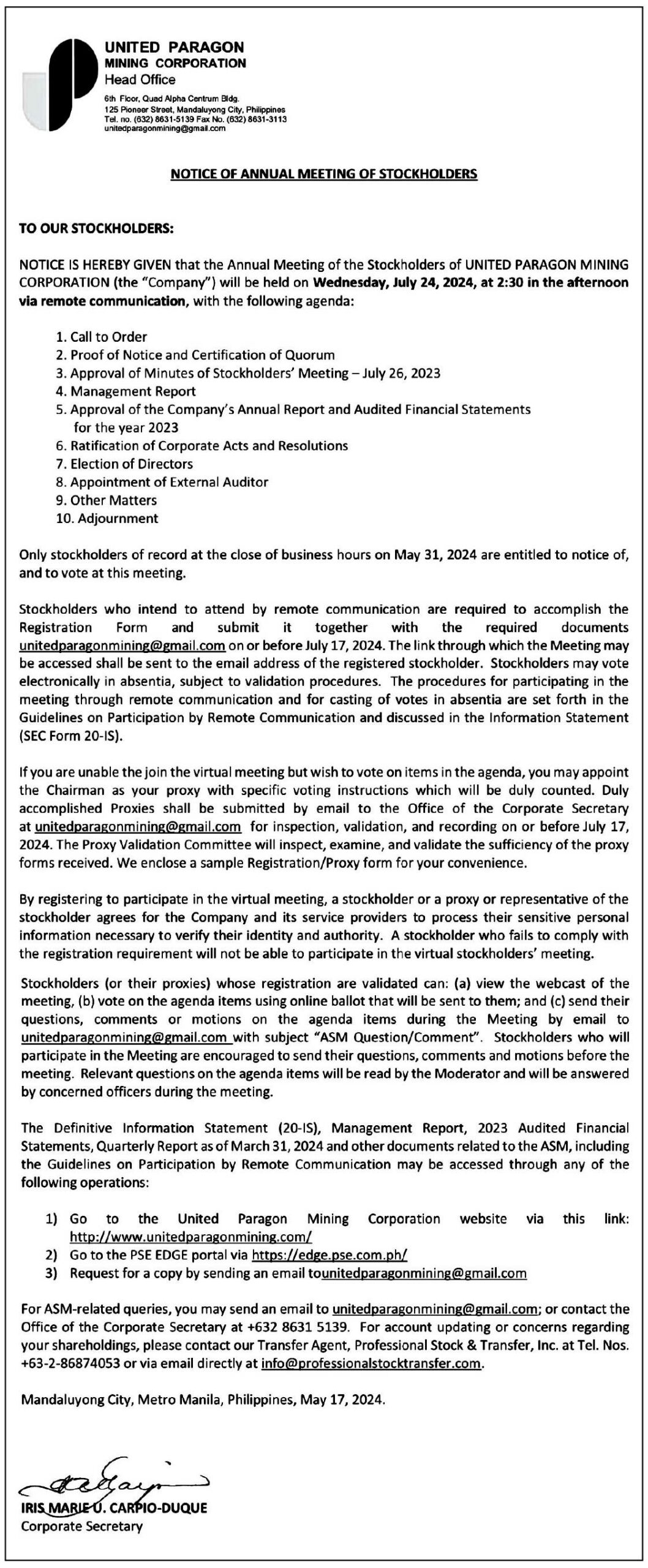 FacebookInstagramTwitterYoutube Wednesday, October 22, 2025 SEARCH Subscribe Home Business Business News World Business Corporate News Market Makers Marketing Board Shipping & Transportation News National News International News Sports Baseball Basketball Billiard Boxing Football Golf Olympics Other Sports Sea Games Tennis Volleyball Lifestyle Arts Columns Fashion Food Health Home Living Entertainment Columns Movies Music/Concert/Shows Spotlight TV/Streaming Opinion Column of the day Editorial Cartoon Editorial Opinion of the day Weekly Features Banking & Finance Torque & Power Alternative Fuel/Electric Vehicles Commercial Vehicles Luxury Cars Motorcycles Test Drives Infotech & Electronics Appliances/Electronics Constructioneering Cybersecurity/Privacy e-Commerce e-Sports/Gaming Fintech/Crypto Gadgets Imaging Printed Circuit Science and Technology Socmed Tech Industry Tech This Week Tech People Property Travel & Tourism Special Features Anniversary Issues 42nd Anniversary Section C Section D Section E Section F Section G Section H 41st Anniversary Supplement 40th Anniversary Report 39th Anniversary Report 38th Anniversary Report Supplements Branded Content Notices NOTICE OF ANNUAL MEETING OF THE STOCKHOLDERS: United Paragon Mining Corporation By ___ July 3, 2024 12:00 AM Updated: July 3, 2024 12:00 AM Share FacebookTwitterPinterestWhatsApp Asia Event Group Inc. launches Aftermarket Expo Asia 2025: A premier platform for innovation and growth in the automotive sector October 2, 2025 Fight vs. illegal gambling gets boost with ₱50M PAGCOR grant to NBI October 2, 2025 NUSTAR Online joins as major sponsor of RED Charity Gala 2025, championing fashion, philanthropy, and Filipino ingenuity October 2, 2025 Nestlé Wellness Campus promotes the importance of nutritious breakfast and healthy habits during Better Breakfast Month October 2, 2025 PlayTime CARES: Strengthening communities and supporting Government for nation-building October 2, 2025 Share FacebookTwitterPinterestWhatsApp Previous articleOPPO to unveil its newest AI Phone — the OPPO Reno12 Series 5G on July 12Next articleMeralco introduces 1st batch of FISSION scholars - Advertisement - - Advertisement - E-Paper More Stories NUSTAR Online joins as major sponsor of RED Charity Gala 2025, championing fashion, philanthropy, and Filipino ingenuity Nestlé Wellness Campus promotes the importance of nutritious breakfast and healthy habits during Better Breakfast Month Load more Related Stories ___ - October 2, 2025Asia Event Group Inc. launches Aftermarket Expo Asia 2025: A premier platform for innovation and growth in the automotive sector ___ - October 2, 2025Fight vs. illegal gambling gets boost with ₱50M PAGCOR grant to NBI ___ - October 2, 2025NUSTAR Online joins as major sponsor of RED Charity Gala 2025, championing fashion, philanthropy, and Filipino ingenuity Load more