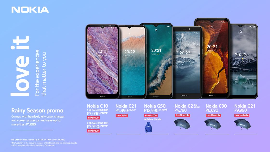 - Three Nokia smartphones — Nokia C2 2nd edition, Nokia C30 and Nokia G21 come with an umbrella freebie.