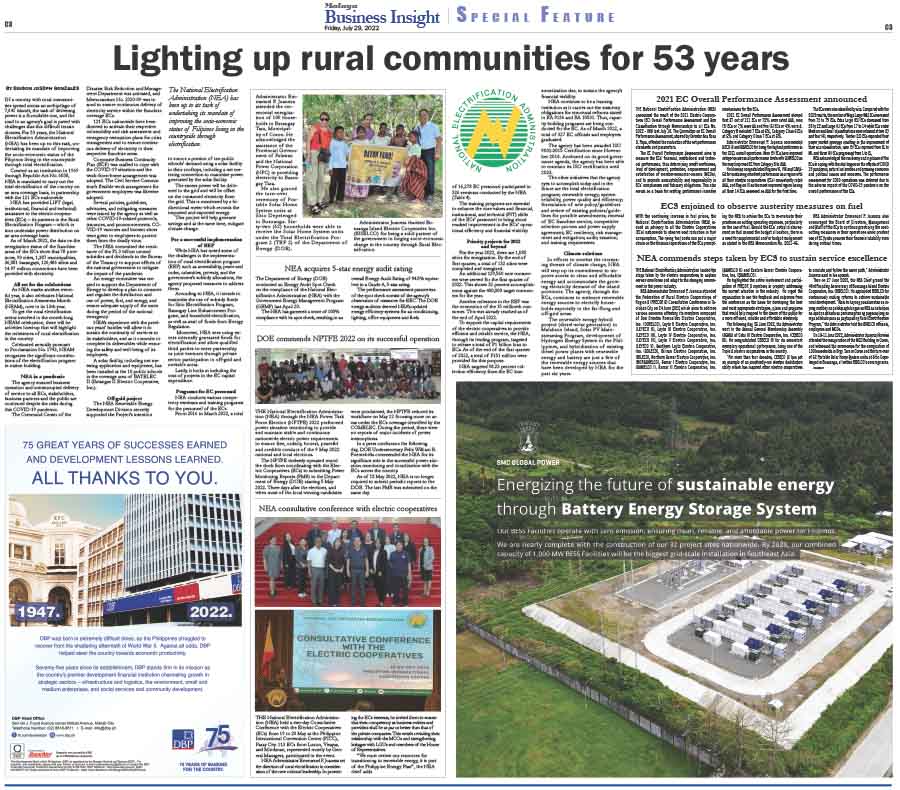 FacebookInstagramTwitterYoutube Monday, October 27, 2025 SEARCH Subscribe Home Business Business News World Business Corporate News Market Makers Marketing Board Shipping & Transportation News National News International News Sports Baseball Basketball Billiard Boxing Football Golf Olympics Other Sports Sea Games Tennis Volleyball Lifestyle Arts Columns Fashion Food Health Home Living Entertainment Columns Movies Music/Concert/Shows Spotlight TV/Streaming Opinion Column of the day Editorial Cartoon Editorial Opinion of the day Weekly Features Banking & Finance Torque & Power Alternative Fuel/Electric Vehicles Commercial Vehicles Luxury Cars Motorcycles Test Drives Infotech & Electronics Appliances/Electronics Constructioneering Cybersecurity/Privacy e-Commerce e-Sports/Gaming Fintech/Crypto Gadgets Imaging Printed Circuit Science and Technology Socmed Tech Industry Tech This Week Tech People Property Travel & Tourism Special Features Anniversary Issues 42nd Anniversary Section C Section D Section E Section F Section G Section H 41st Anniversary Supplement 40th Anniversary Report 39th Anniversary Report 38th Anniversary Report Supplements Branded Content Notices SPECIAL FEATURES: Lighting up rural communities for 53 years By ___ July 29, 2022 12:00 AM Updated: July 29, 2022 12:00 AM Share FacebookTwitterPinterestWhatsApp Asia Event Group Inc. launches Aftermarket Expo Asia 2025: A premier platform for innovation and growth in the automotive sector October 2, 2025 Fight vs. illegal gambling gets boost with ₱50M PAGCOR grant to NBI October 2, 2025 NUSTAR Online joins as major sponsor of RED Charity Gala 2025, championing fashion, philanthropy, and Filipino ingenuity October 2, 2025 Nestlé Wellness Campus promotes the importance of nutritious breakfast and healthy habits during Better Breakfast Month October 2, 2025 PlayTime CARES: Strengthening communities and supporting Government for nation-building October 2, 2025 Share FacebookTwitterPinterestWhatsApp Previous articleNext articleMaynilad steps up Laguna Lake protection thru river clean-up drives - Advertisement - - Advertisement - E-Paper More Stories NUSTAR Online joins as major sponsor of RED Charity Gala 2025, championing fashion, philanthropy, and Filipino ingenuity Nestlé Wellness Campus promotes the importance of nutritious breakfast and healthy habits during Better Breakfast Month Load more Related Stories ___ - October 2, 2025Asia Event Group Inc. launches Aftermarket Expo Asia 2025: A premier platform for innovation and growth in the automotive sector ___ - October 2, 2025Fight vs. illegal gambling gets boost with ₱50M PAGCOR grant to NBI ___ - October 2, 2025NUSTAR Online joins as major sponsor of RED Charity Gala 2025, championing fashion, philanthropy, and Filipino ingenuity Load more