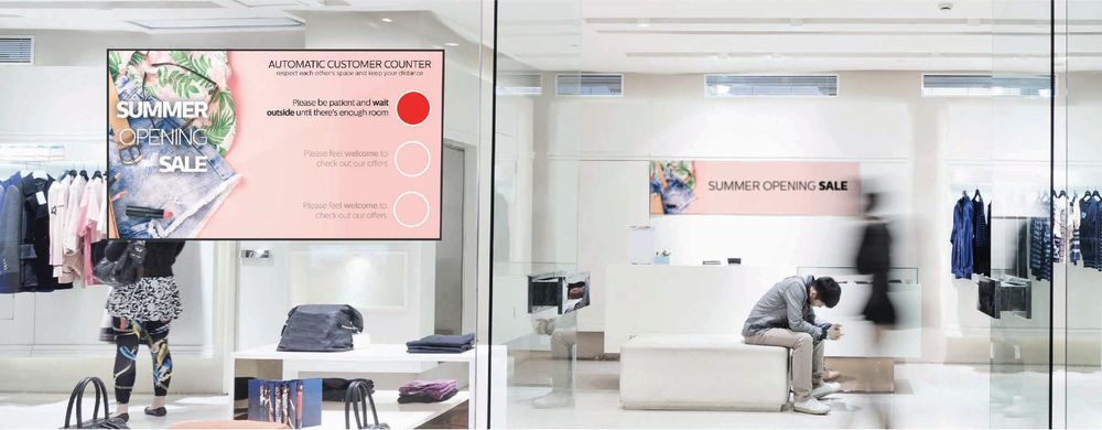 When the occupancy has reached its maximum number, the system can alert or trigger the facility’s building access control system to secure the entrance until the occupancy is reduced. The system also delivers real-time information to the display for customer queue communications, alerting visitors whether they must wait or if they can enter.