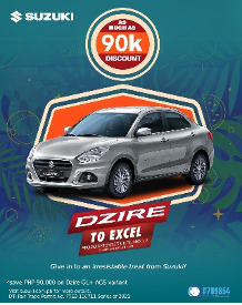 Dzire to Excel. Give in to an irresistible treat from Suzuki and save up to Php 90,000 on the Dzire GL + AGS variant. Promo extended until May 31, 2021.