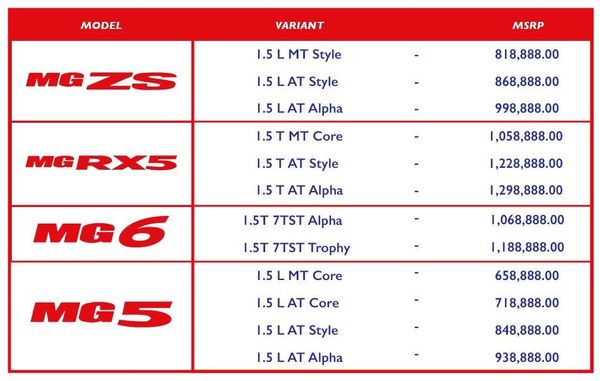 This limited offer is carried out in all of MG Philippines’ 37 operational dealerships; namely, In Metro Manila: Alabang, Araneta-Cubao, BF Parañaque, Commonwealth, Congressional, EDSA Centris, Makati, Marikina, North EDSA, Otis, Pasay, Sucat, Quezon Avenue; in Luzon: Bacoor, Batangas, Cabanatuan, Calasiao, Camarines Sur, Carmona, Dasmariñas, Ilocos Norte, Lipa, Marilao, Pulilan, San Fernando, Sta. Rosa, and Taytay; in the Visayas: Bacolod, Bohol, Cebu-Mandaue, Iloilo, and Tacloban; and in Mindanao: Cagayan de Oro, Davao, General Santos, Valencia, and Zamboanga.