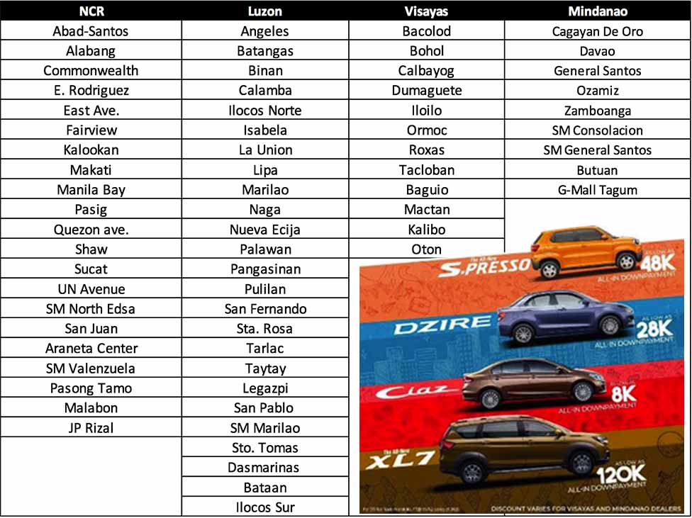 Suzuki Philippines is happy to announce that majority of their dealerships have opened with the month of May. With the decision to welcome their customers, may it be for sales, auto-services, or test drives, the automobile company has endeavored to make sure that they will continuously find ways to present their customers with promos that are cost efficient for interested vehicle buyers including down payment policies and discounts.