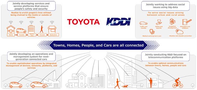 Details of the business alliance. The companies are also accelerating new initiatives that go beyond the borders of their core business of mobility and telecommunications in anticipation of the coming future society in which towns, homes, people and cars are all connected.