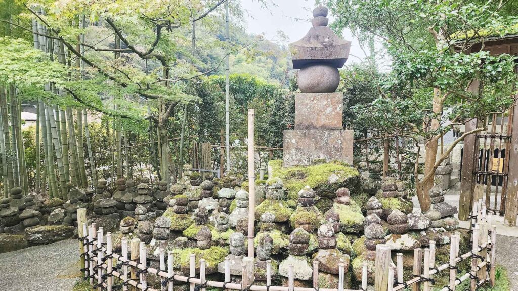 The temple is also home to a modest bamboo forest. A dense landscape of more than 2,000 bamboo plants offers a serene environment for guests to explore behind Hokokuji Temple’s main hall. Subtle differences in weather conditions change the experience of walking through this area, and the vibrant green of moss-covered stones further enhances the contemplative mood of the environs.
