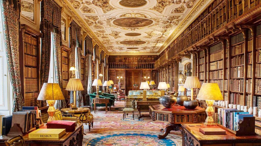 The library is another highlight of the house, considered by many to be one of the finest private libraries in the world. It houses over 17,000 books all housed in wood-panelled walls all marked with the patina of age – hinting at the numerous years the house has endured.